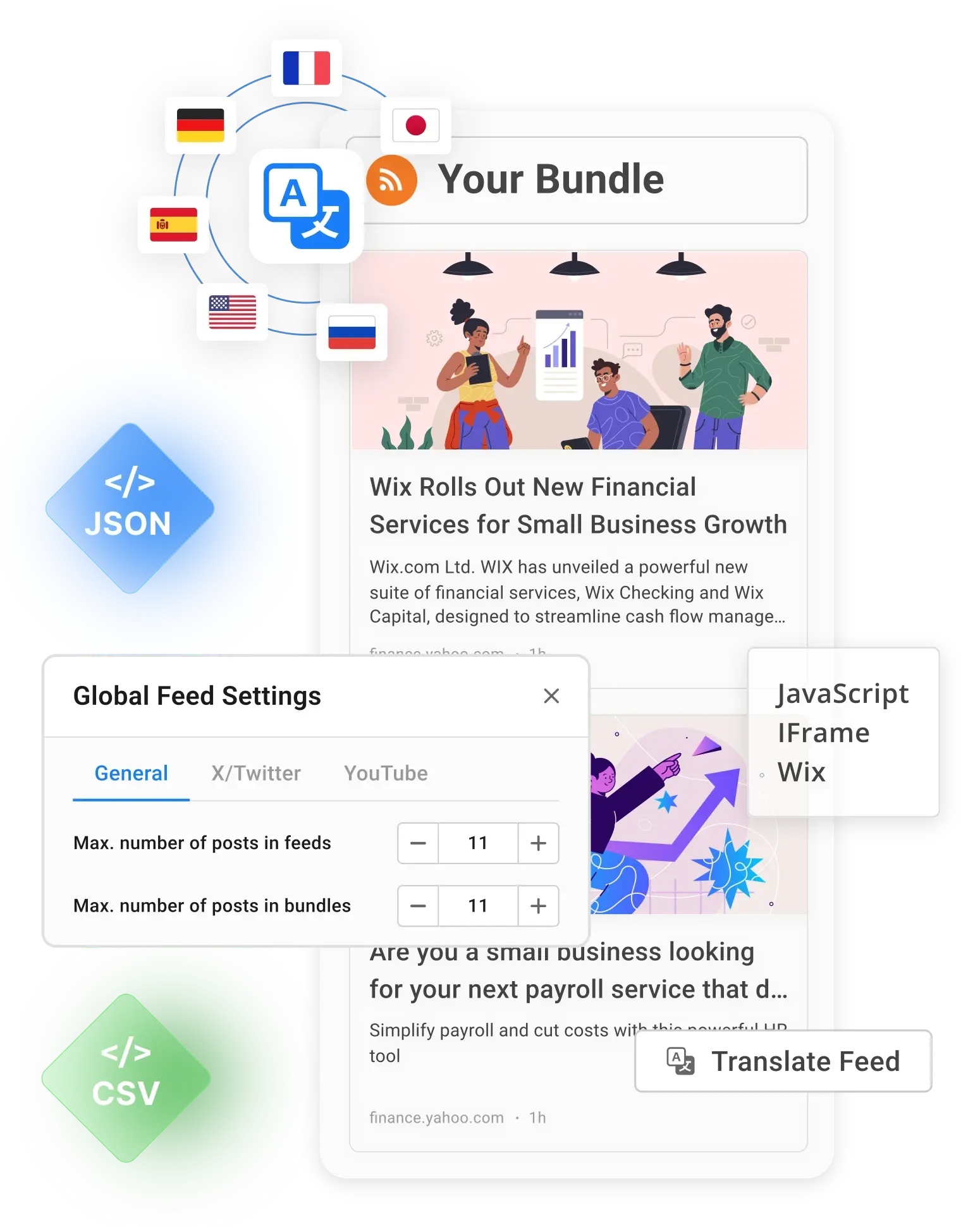 Translate your RSS feeds into any language to make your content accessible and relevant to global audiences.